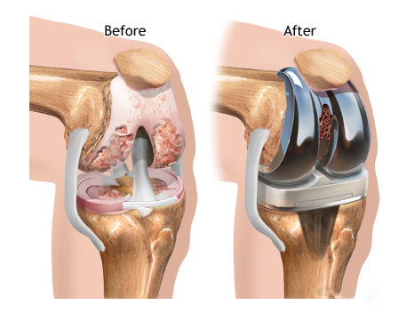 The Surgery where we replace the diseased joint by an artificial one. It alleviates the patient pain and improves his motion. It aims at improving the patient quality of life. The artificial joint is fixed to the bone by cement.